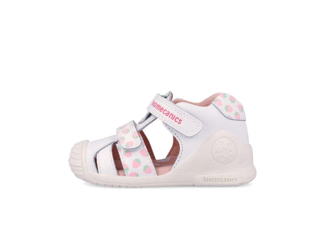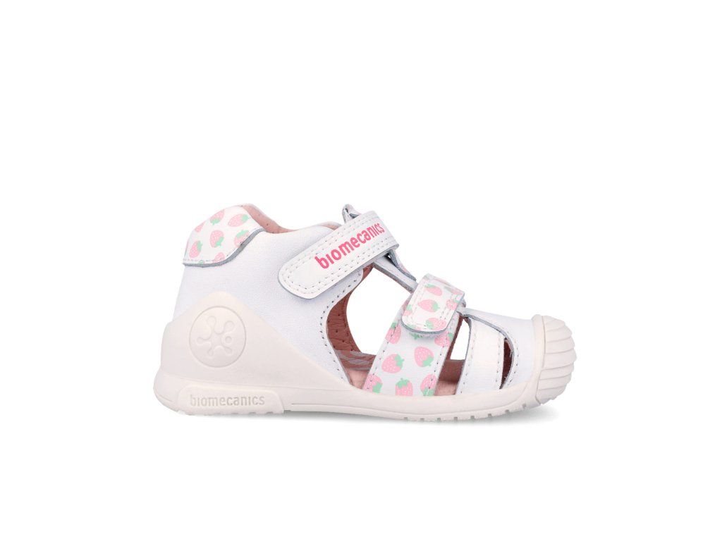 Detské členkové sandálky Biomecanics 262107-B050 Napa Blanco sú vhodné na teplé dni. Topánky španielskej značky s ergonomickým dizajnom a strihom sú ako stvorené pre začínajúcich chodcov a deti s bacuľatejšími nôžkami.