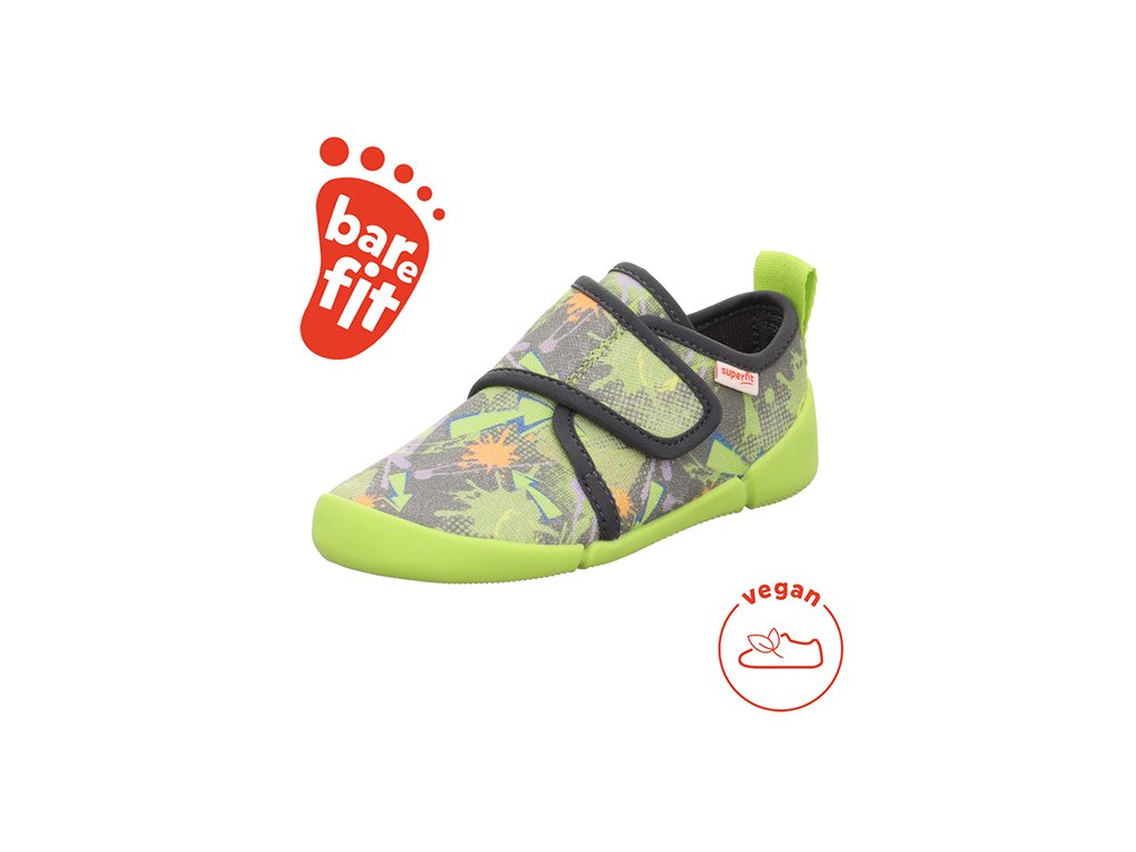 Veselé a nápadité detské vegánske papučky Superfit 1-006700-8510 VENTI s rozšírenou prstovou časťou.