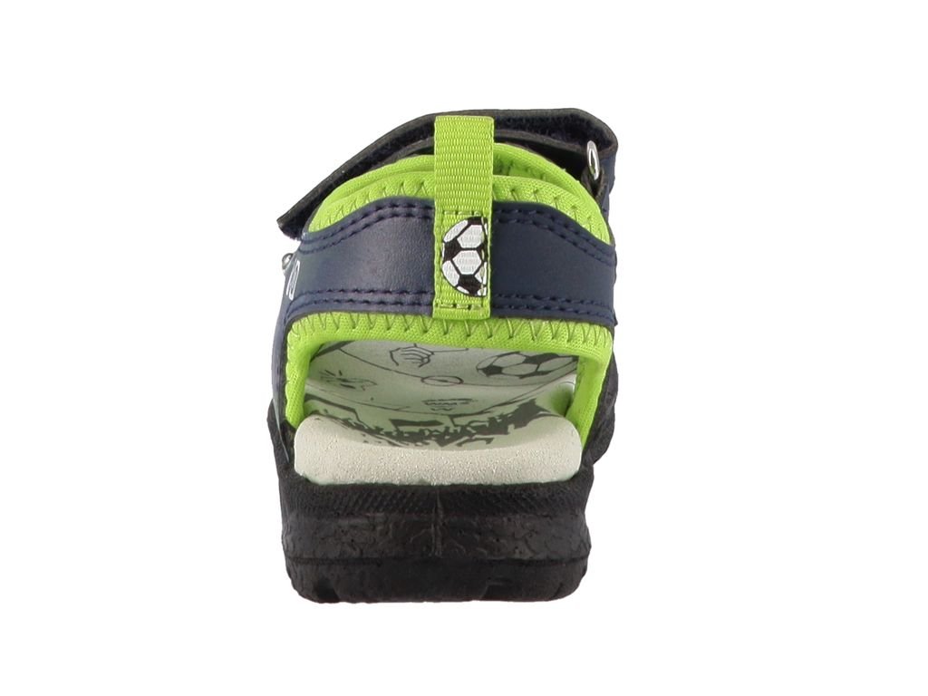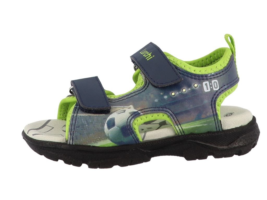 Otvorené letné sandálky nemeckej firmy Lurchi by Salamander 74L1303017 Kodo - Navy. Chlapčenská obuv s futbalovými motívmi, ktorá pri chôdzi bliká.